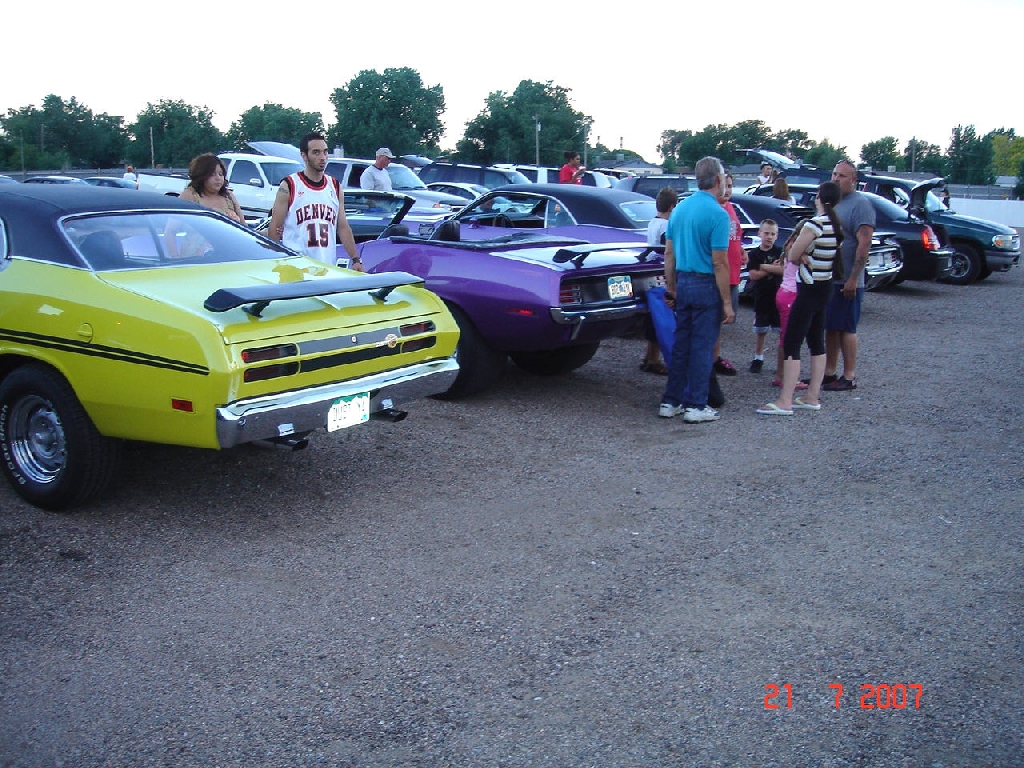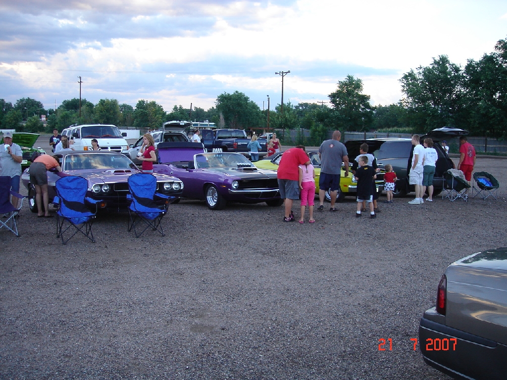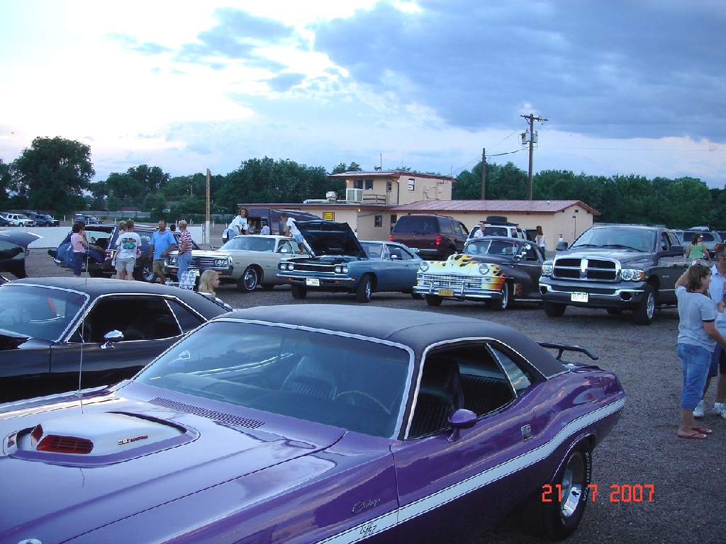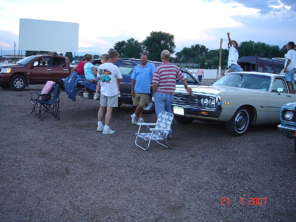 For the last several years, Colorado Springs and Pueblo members of the Southern Colorado Mopars have cruised together to what's probably the last drive-in theater in southern Colorado, the Mesa Drive-In in Pueblo. This year was no exception. With dry and warm weather, members and family arrived early to set up and give the other movie goers an impromptu car show before the first movie. As the sky got darker, the clouds cleared and the parking lot was full of spectators. Thirty members and family watched the movies from their Mopars.